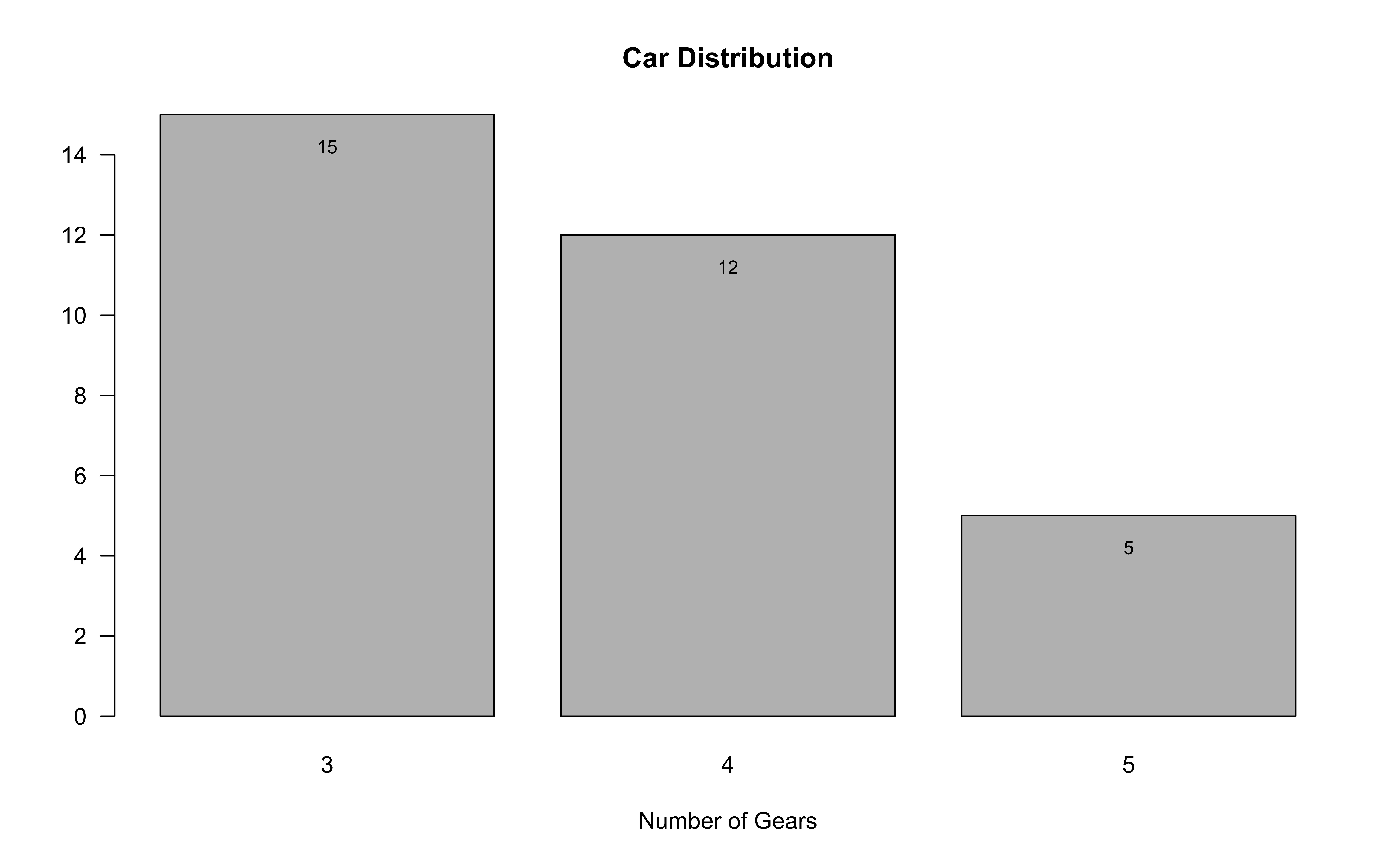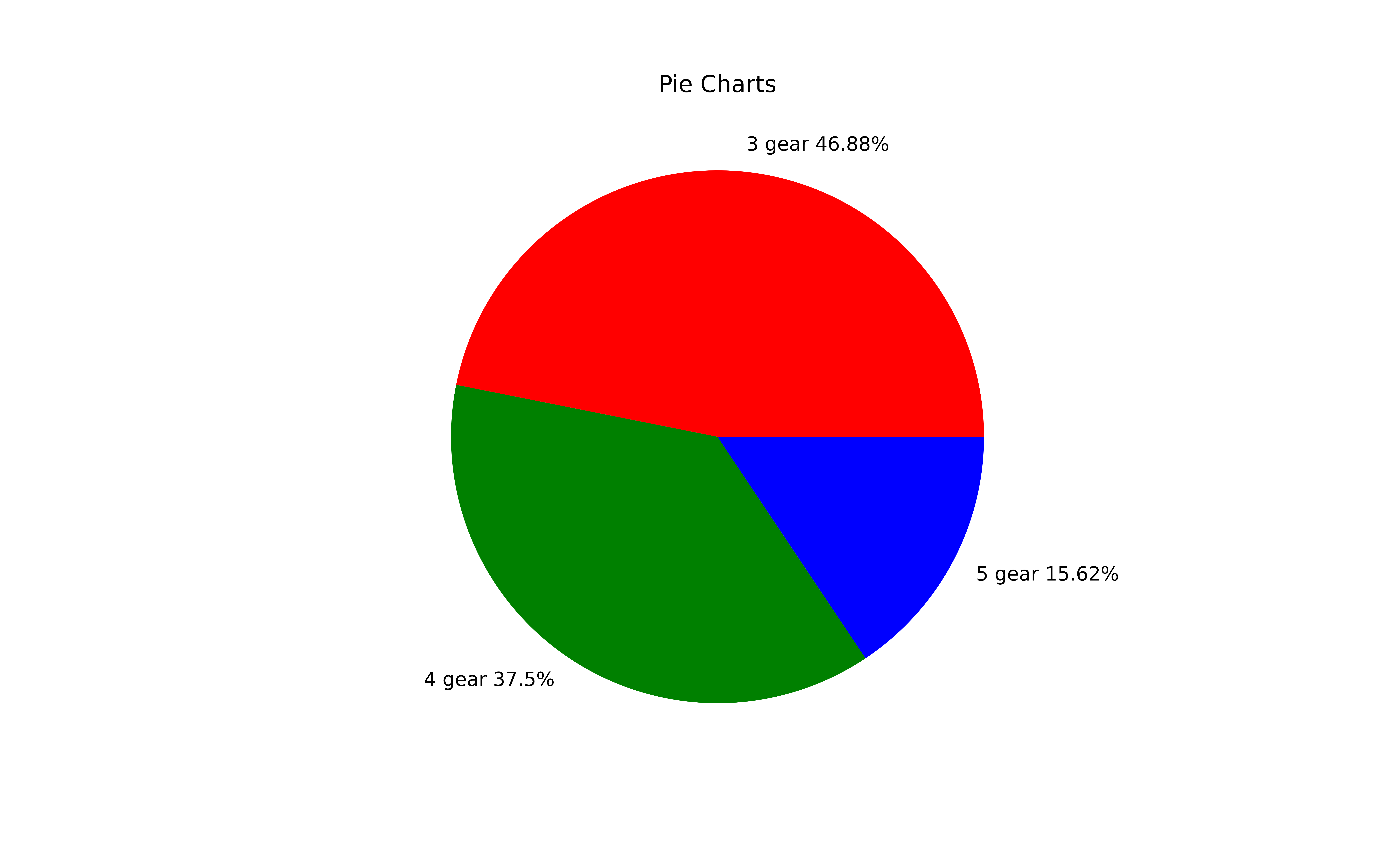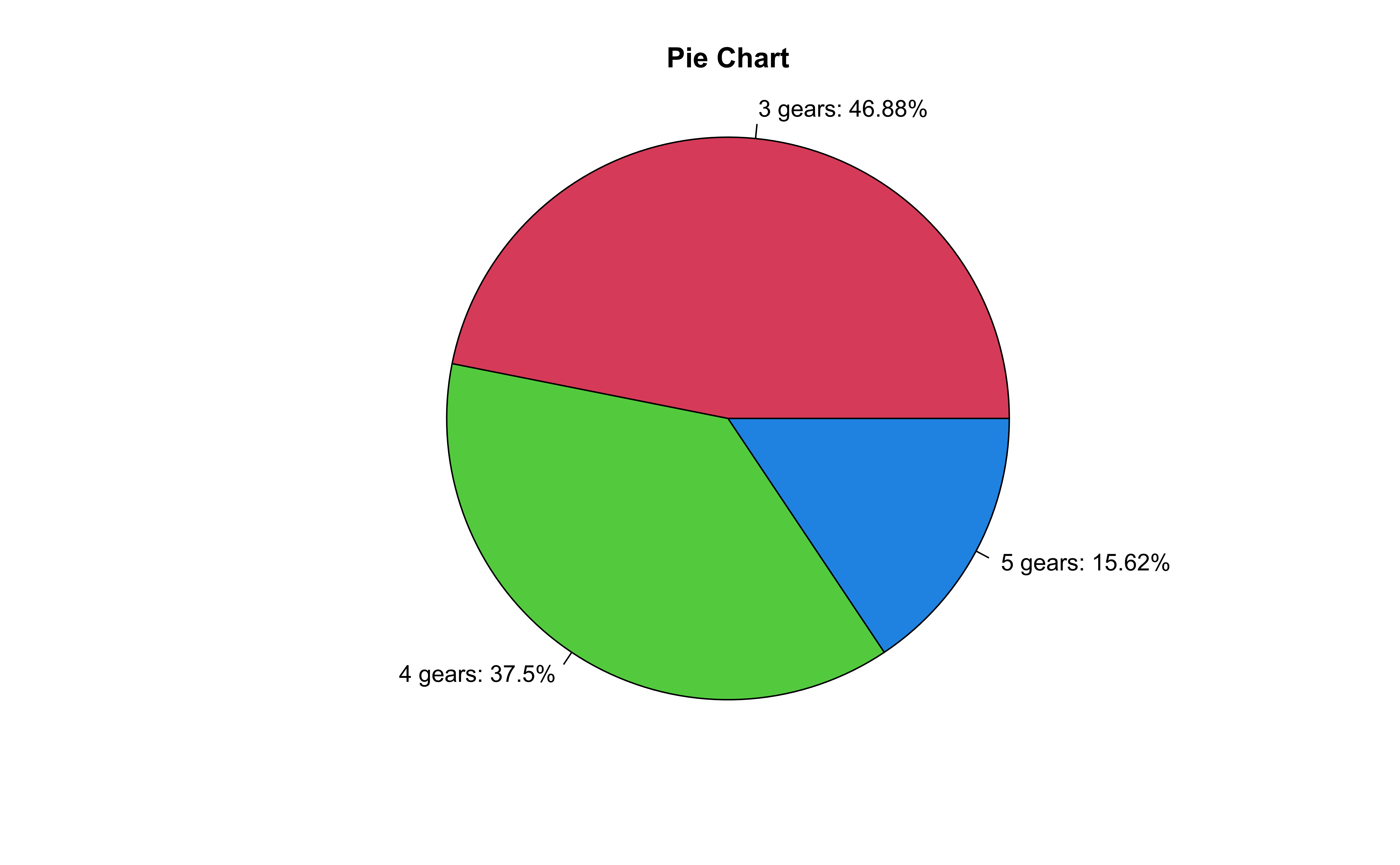 [1] "3 gears: 46.88%" "4 gears: 37.5%" "5 gears: 15.62%"