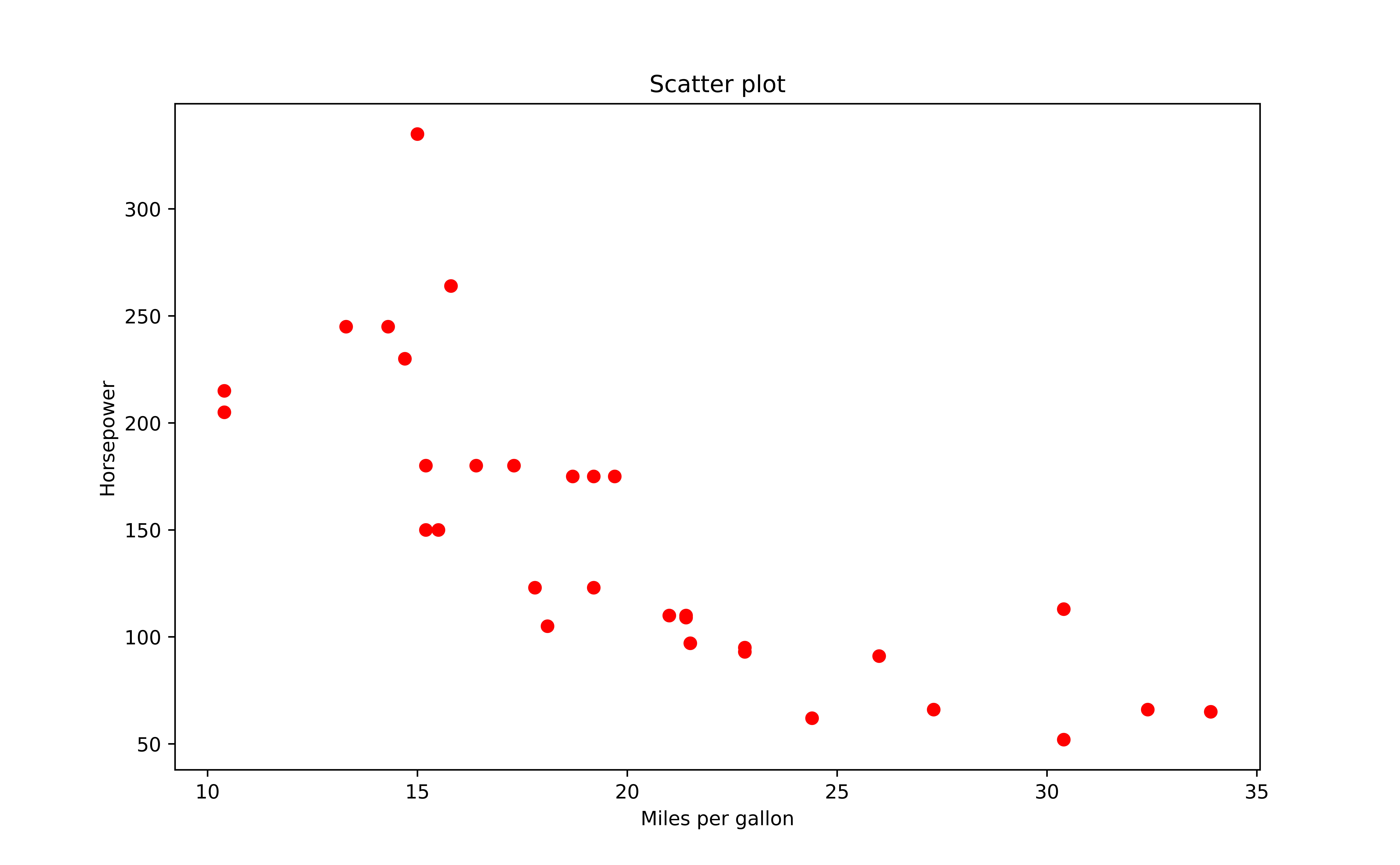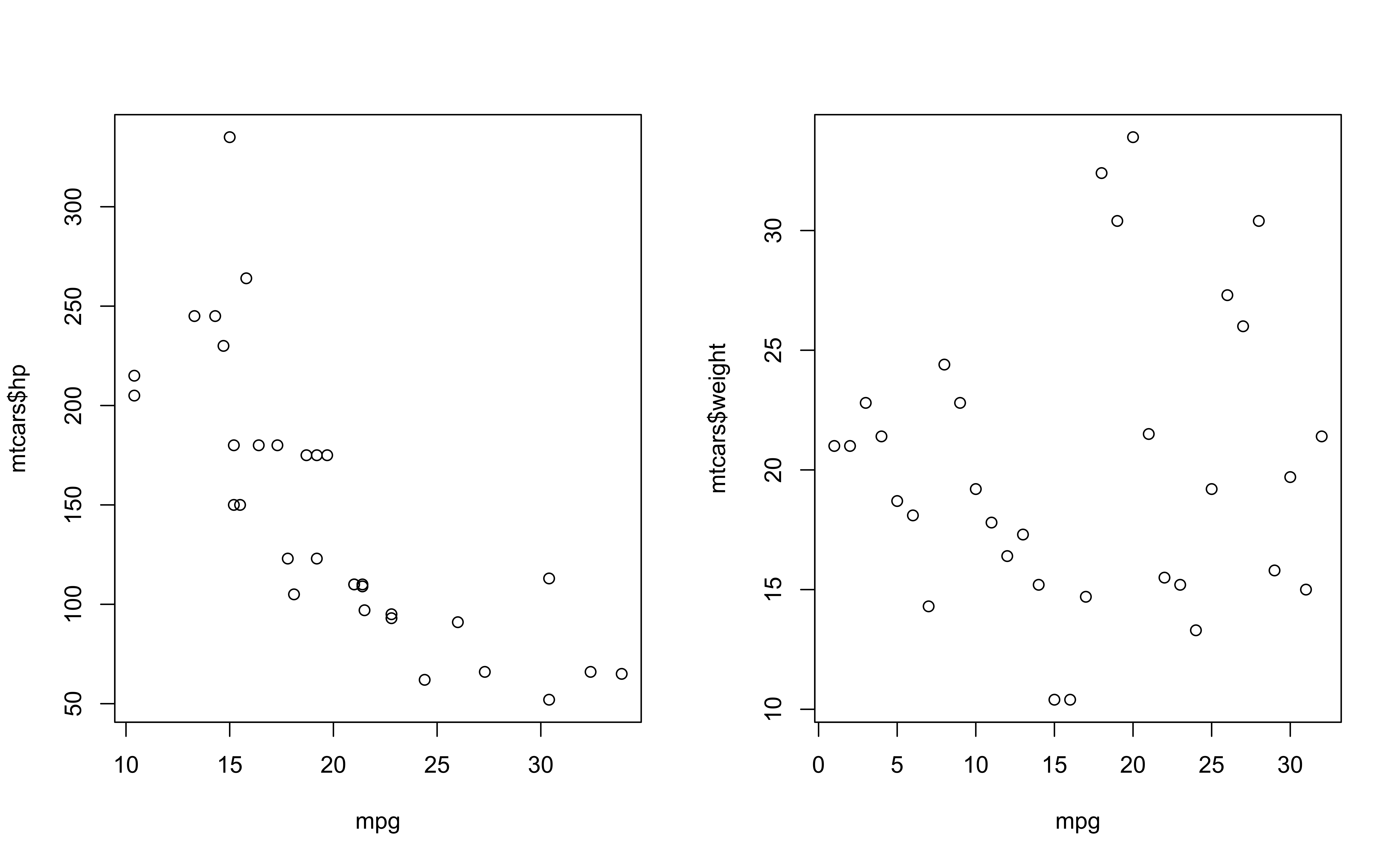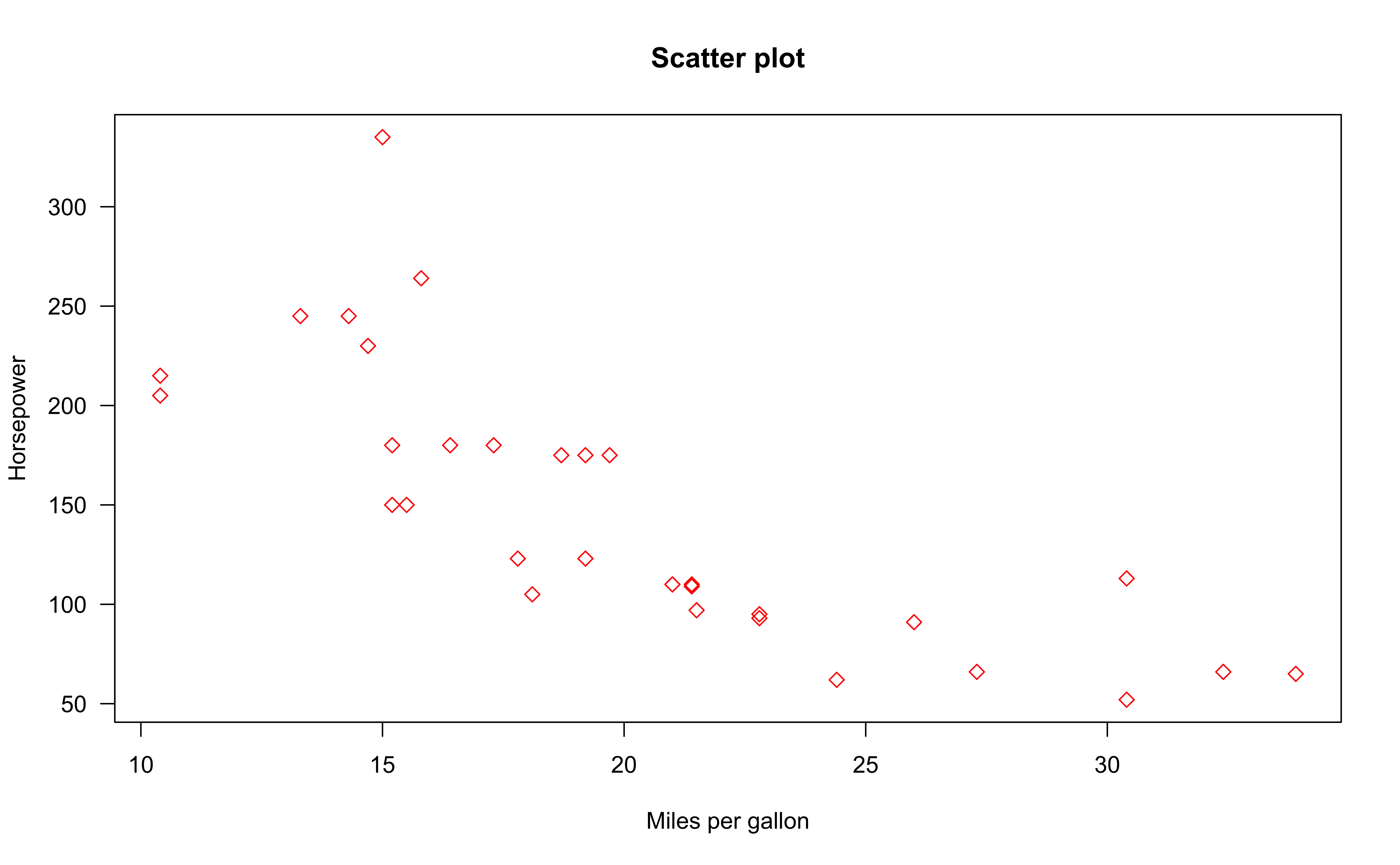 make a scatter plot of miles per gallon vs. weight. Decorate your plot using arguments, col, pch, xlab, etc.