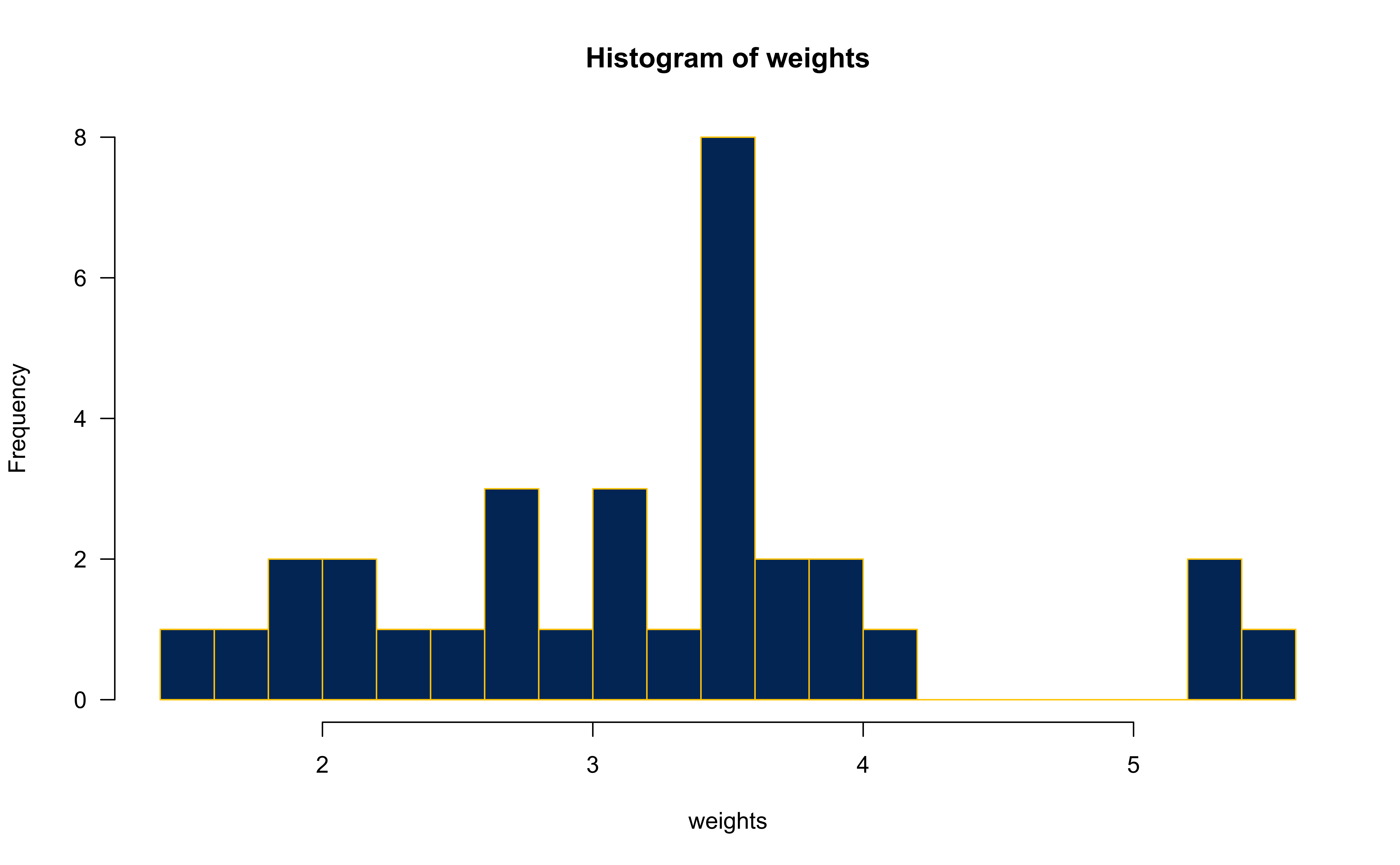 hist() decides the class intervals/with based on breaks. If not provided, R chooses one.hist()