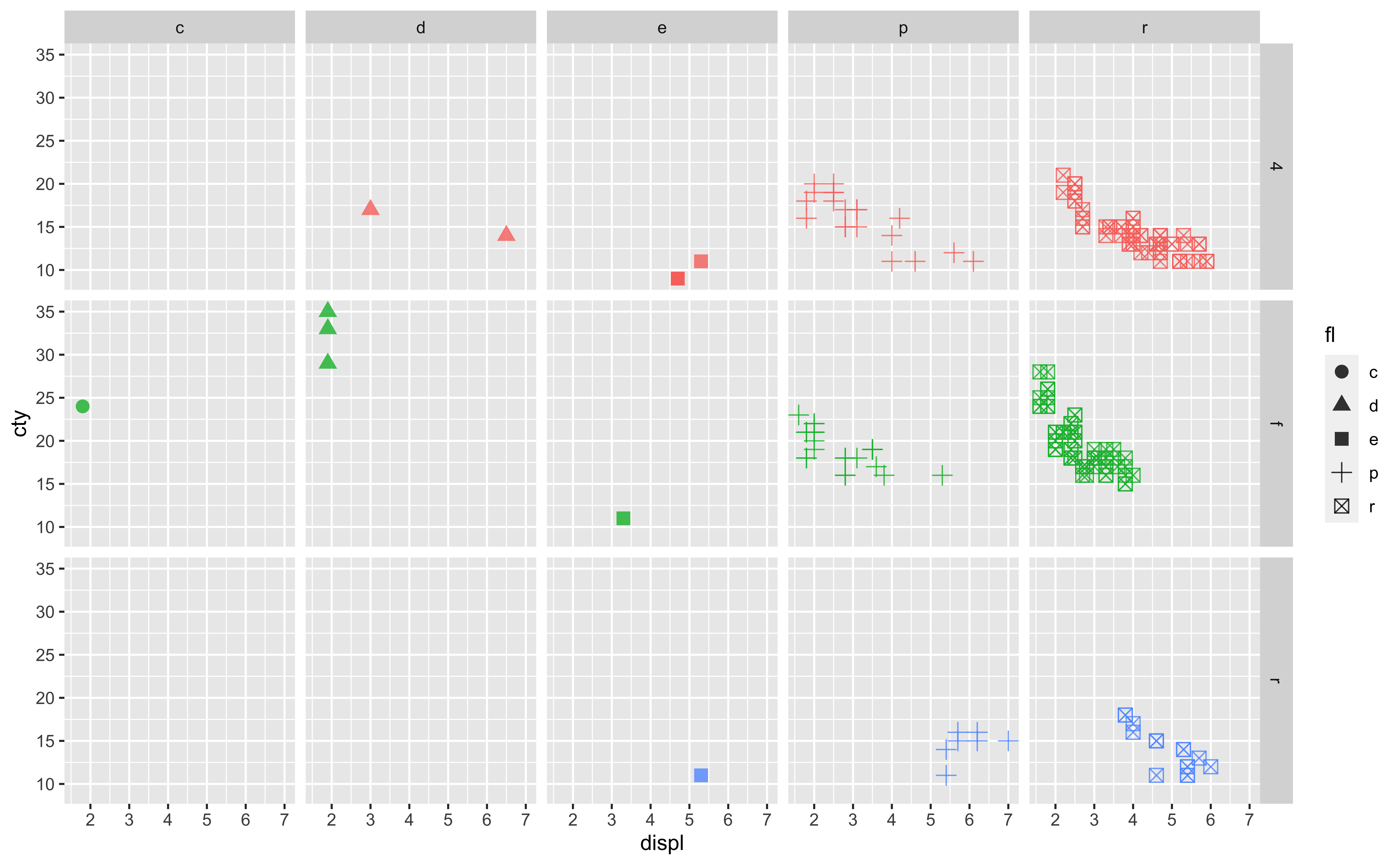 split your plot into facets, smaller plots that each display one subset of the data.