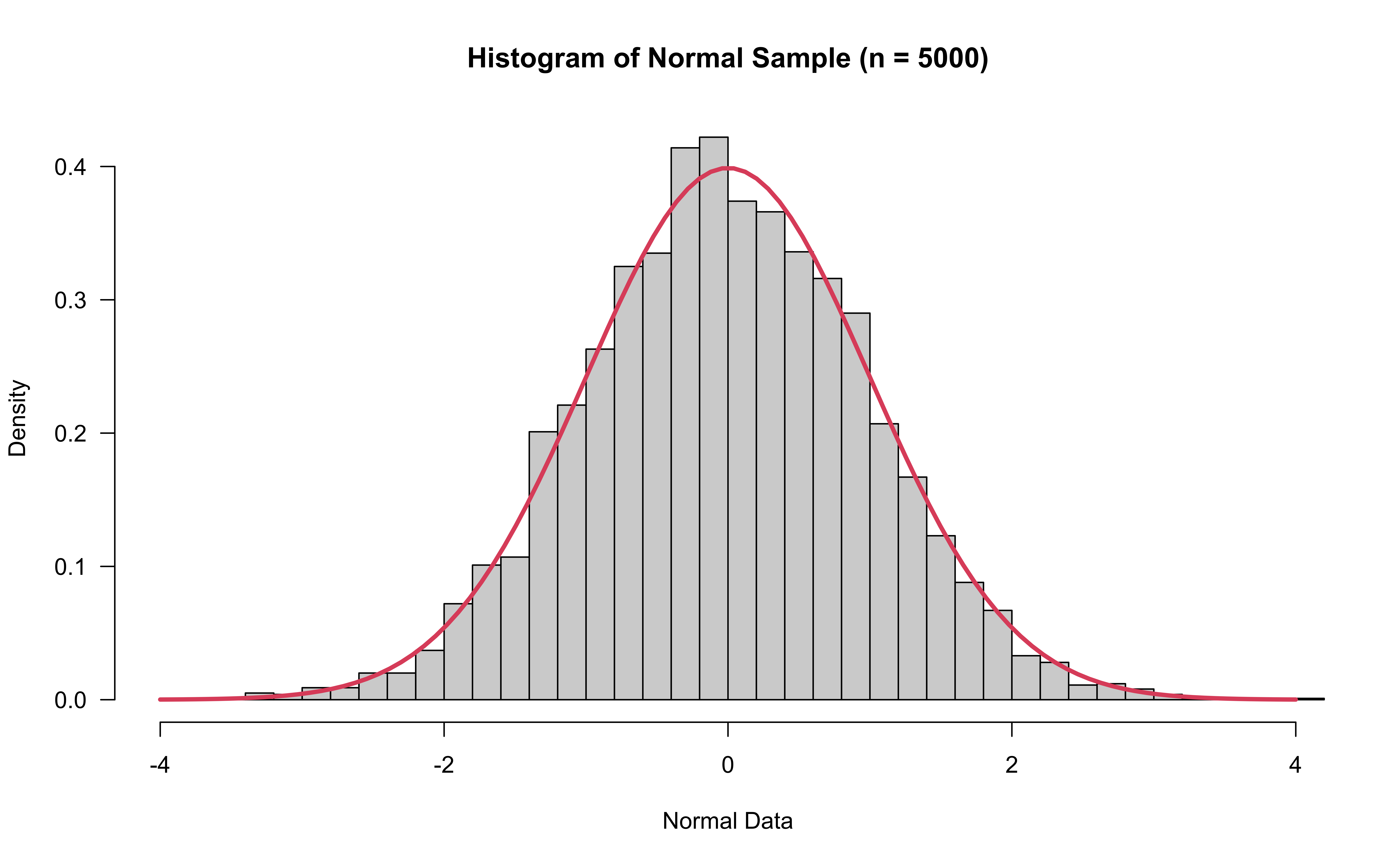 rnorm(n, mean, sd): Draw \(n\) observations from a normal distribution with mean mean and standard deviation sd.