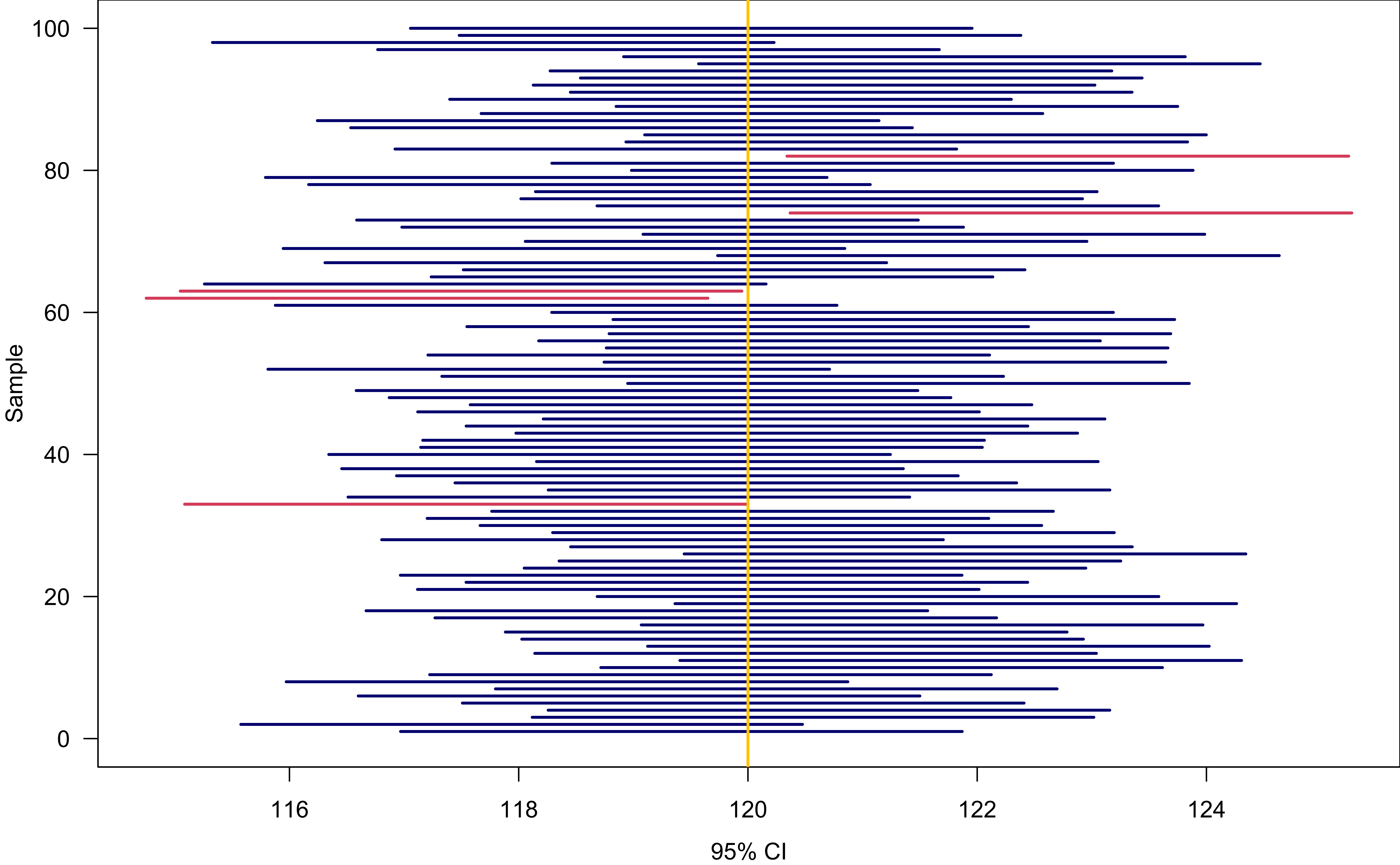 xlab = "95% CI", ylab = "Sample", las = 1)