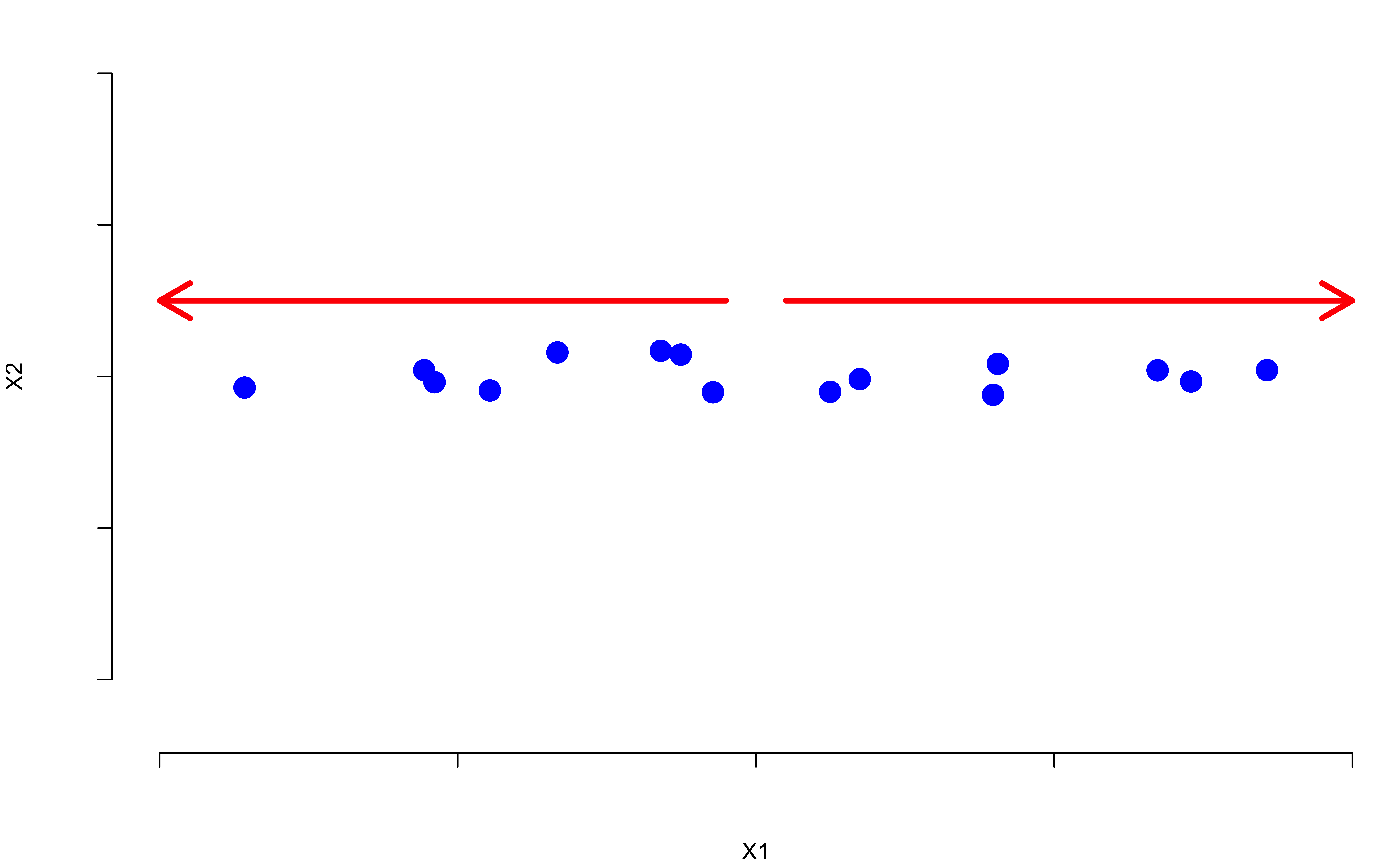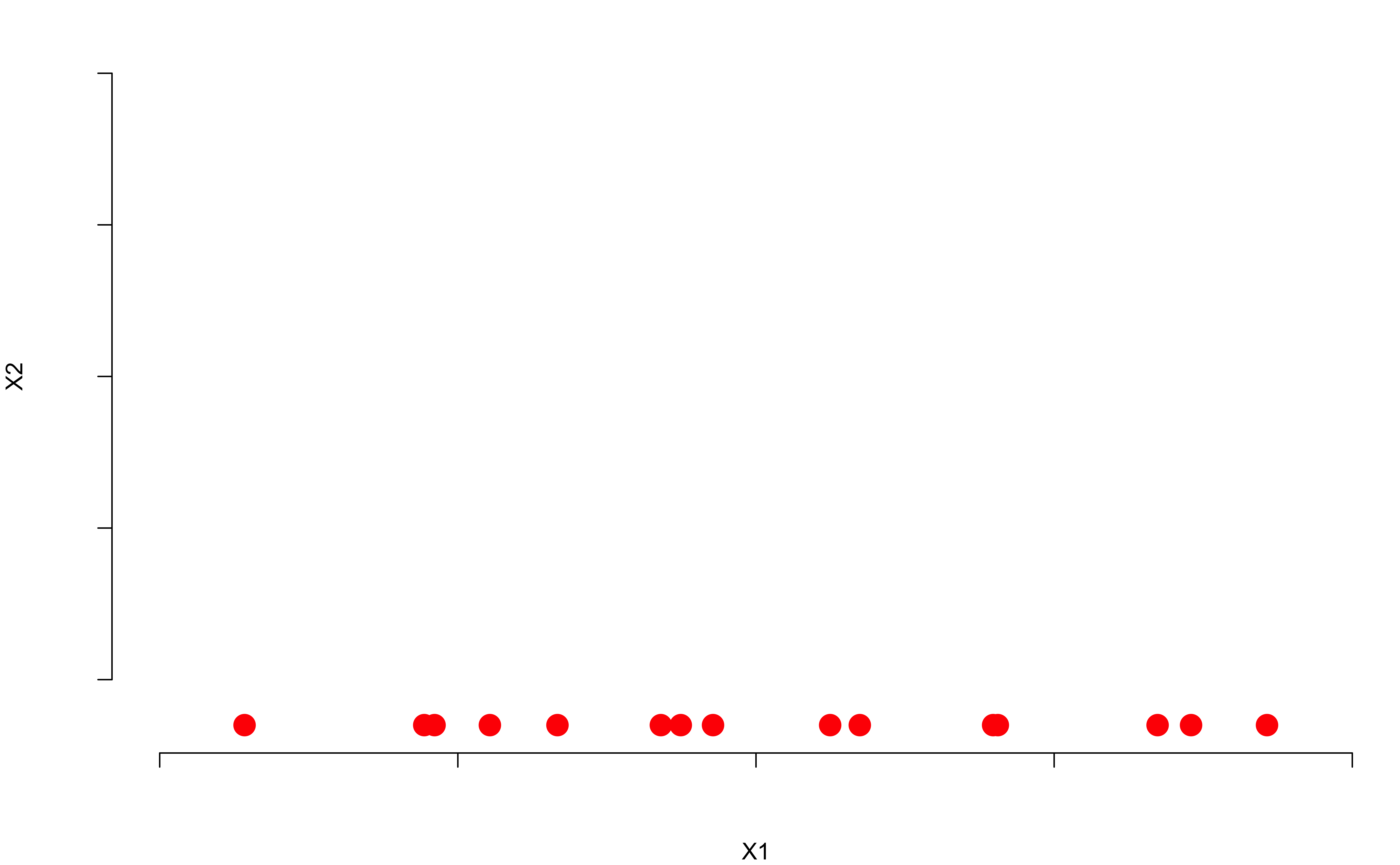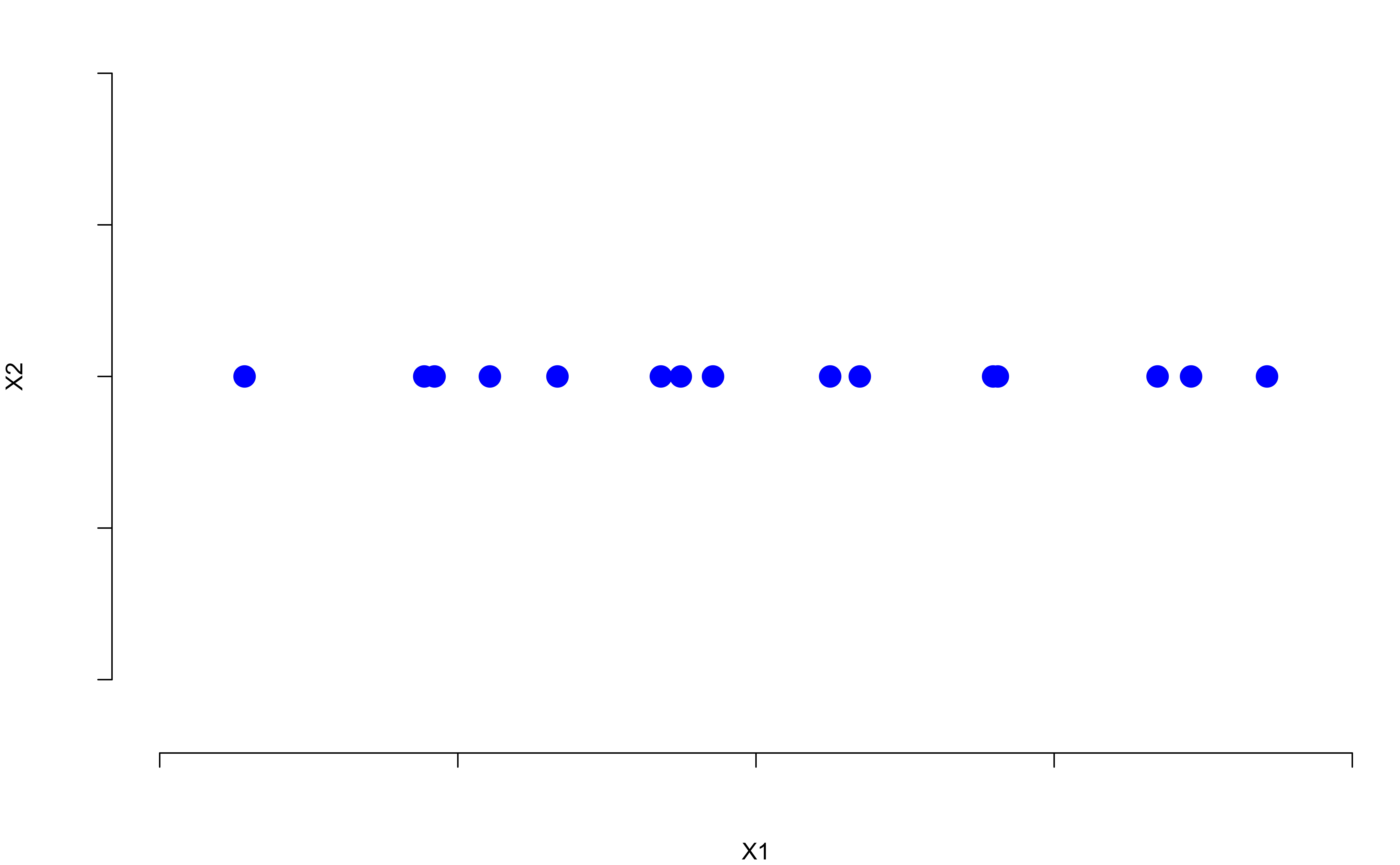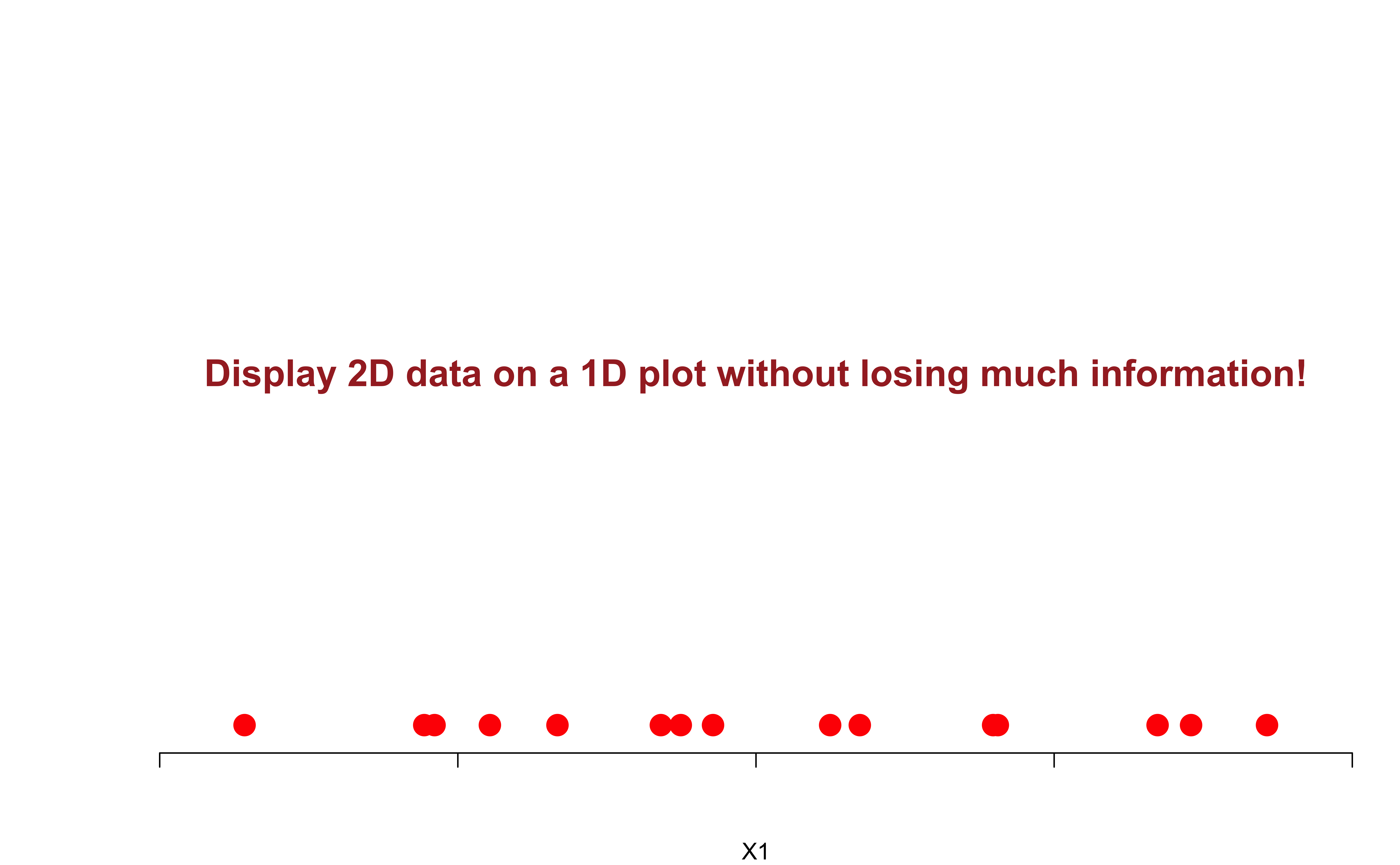 Use two created variables to represent all \(p\) variables, and make a scatter plot of the two created variables to learn what our observations look like as if they lived in the high dimensional space.