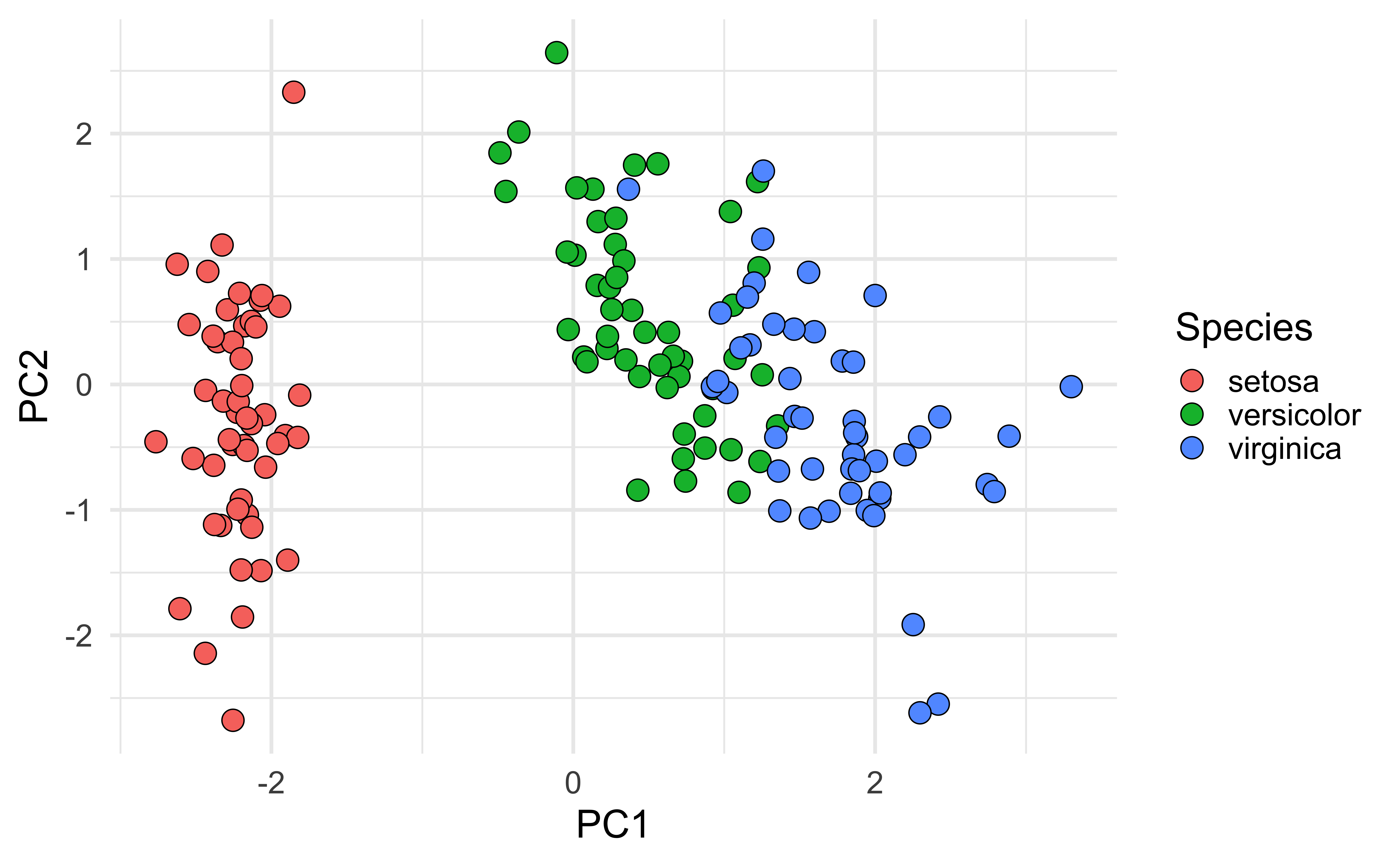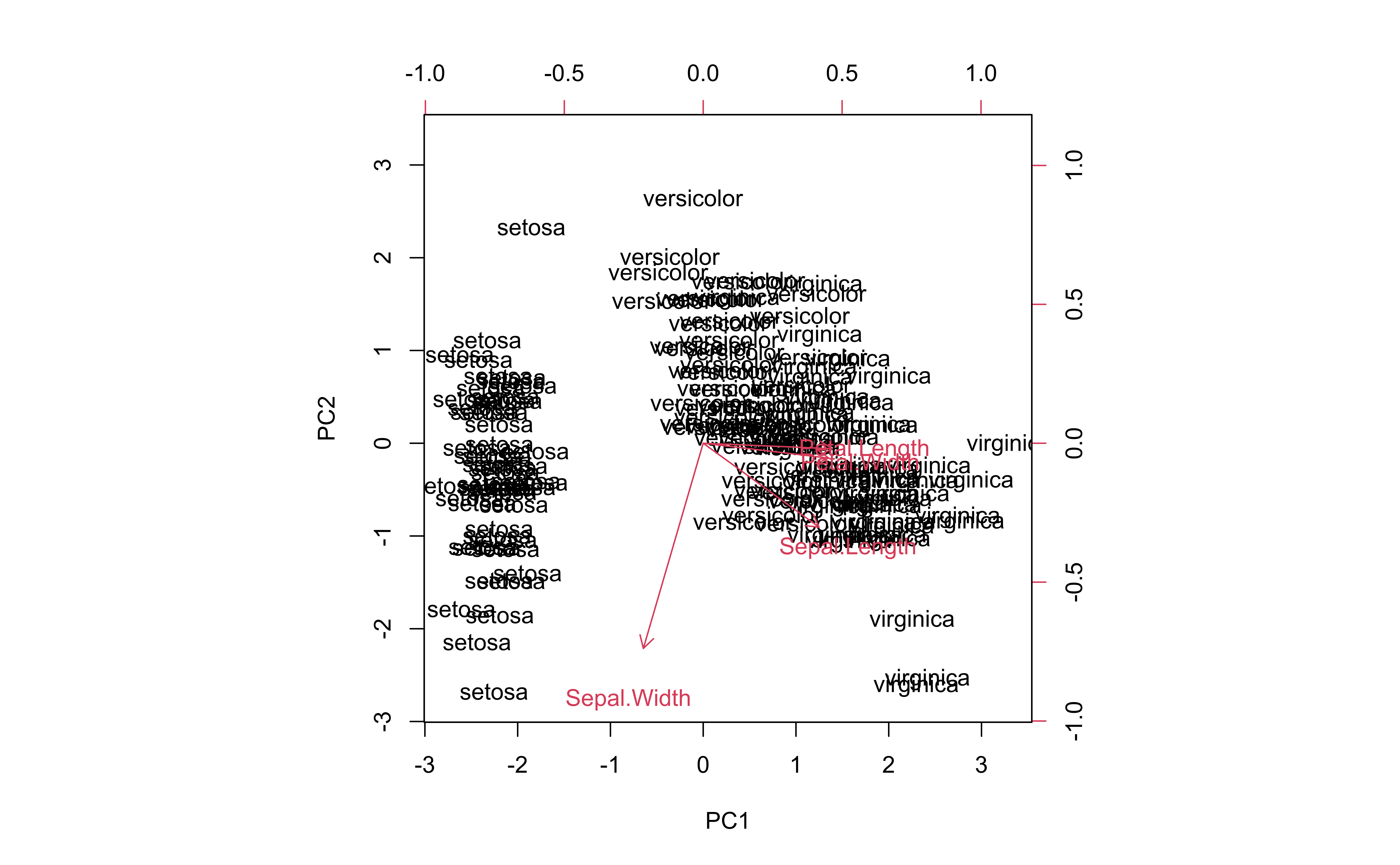 Perform PCA on Sepal.Length, Sepal.Width, Petal.Length, and Petal.Width.