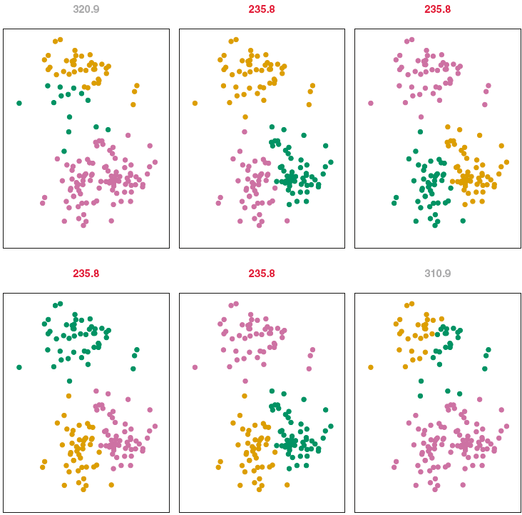 kmeans()K-means clustering with 3 clusters of sizes 67, 88, 85